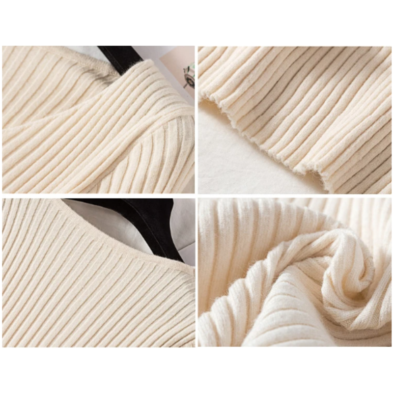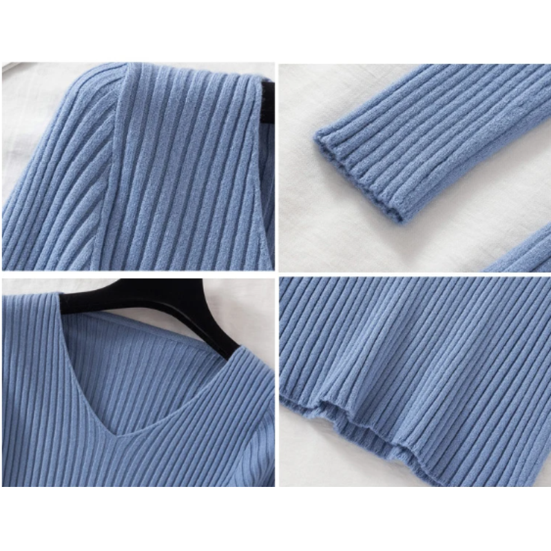 This slim-fit ribbed V-neck sweater combines elegant simplicity with a figure-hugging silhouette, perfect for both casual and dressed-up looks.