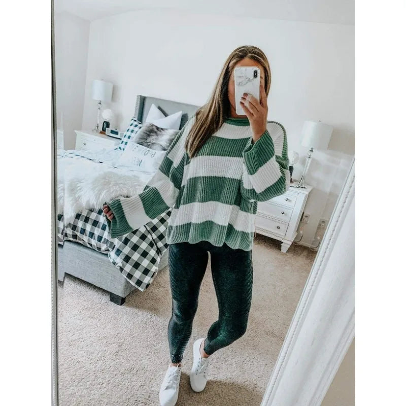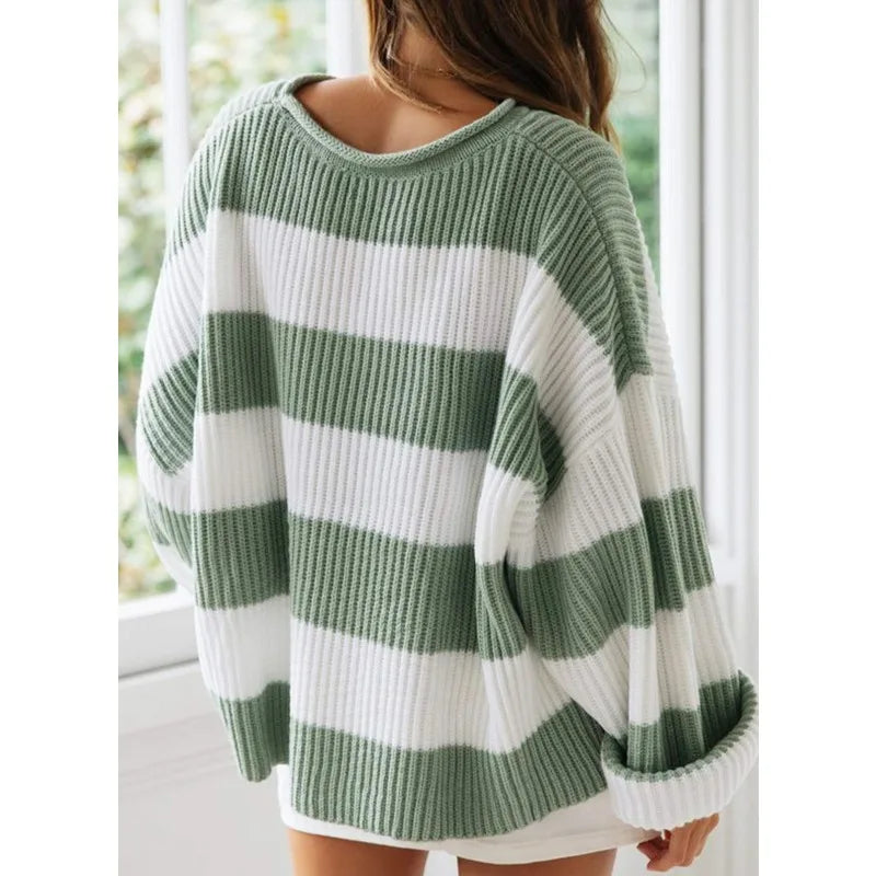 Make a statement with this oversized striped sweater, perfect for adding a pop of color to any outfit. Soft, cozy, and effortlessly stylish for any season.