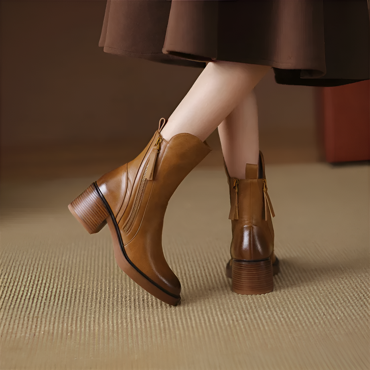 Josette Women's Leather Ankle Boots | Chunky Sole & Zip Closure